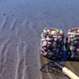磯遊びをするくらいの年齢のお子様はバケツを持って行くのもよいかと思いますが、アサリをメインで採る場合は、現地で網を購入できるので、それに入れるのがベスト。網は大体2キロくらい用になっているので、大体の重さが分かるので、超過回避できます。